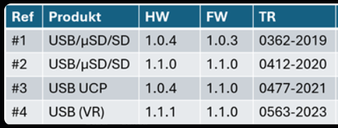 Die BSI - Zertifikats - ID kann aus der folgenden Tabelle abgeleitet werden. Die Firmware-ID und Hardware-ID Ihrer SIWSSBIT-TSE entnehmen Sie bitte ebenfalls Ihrer Kassensoftware oder dem Maintenance-Tool.